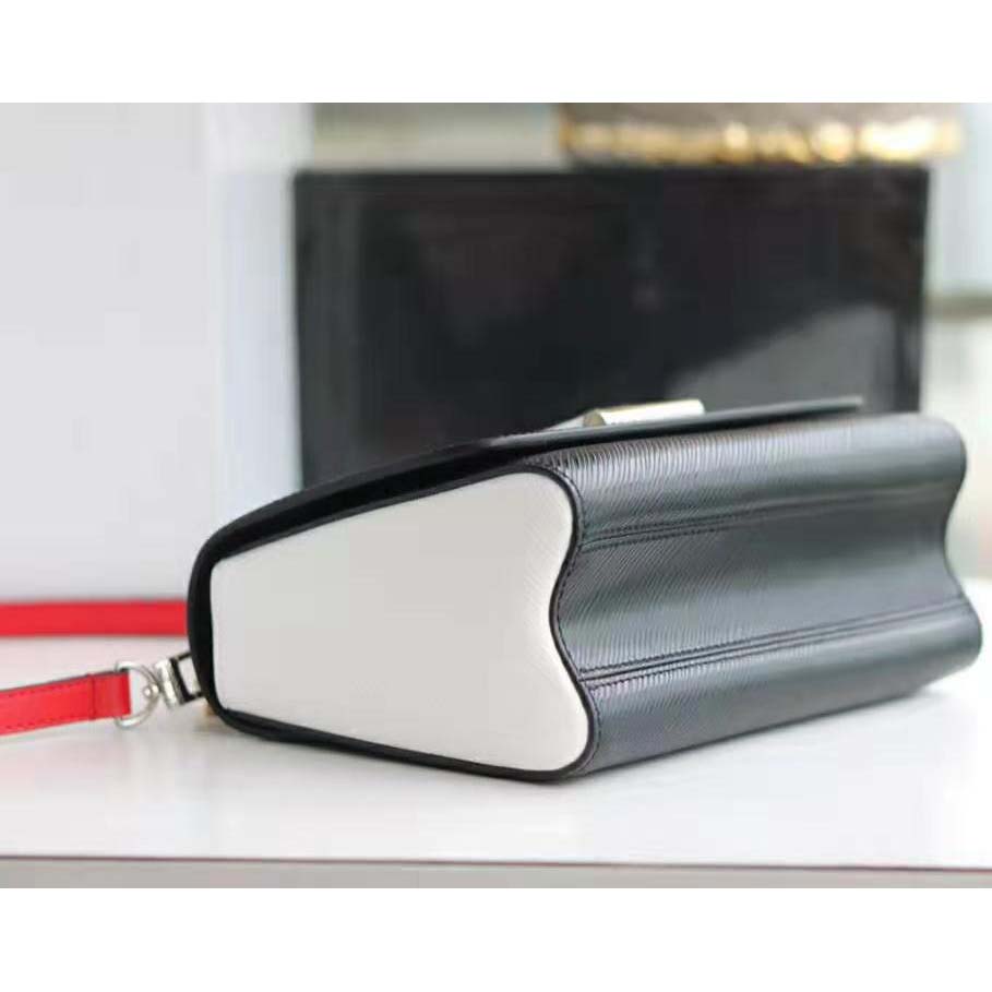 This neatly proportioned bag, with its transforming LV twist-lock, features a long leather strap for shoulder or cross-body carry.