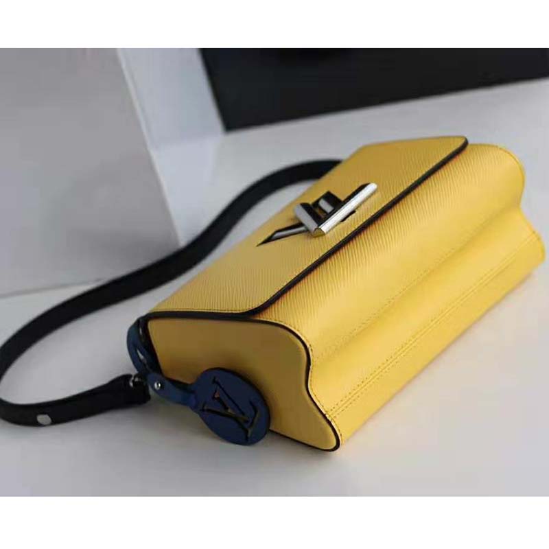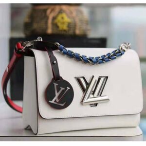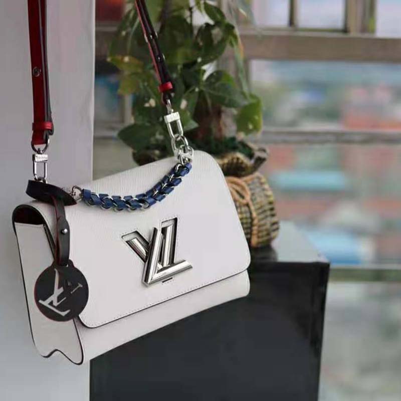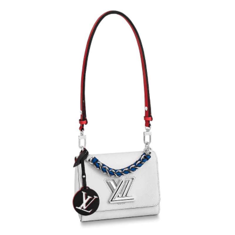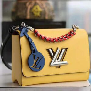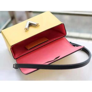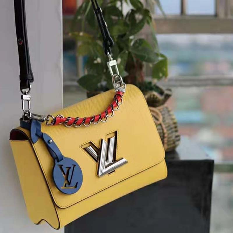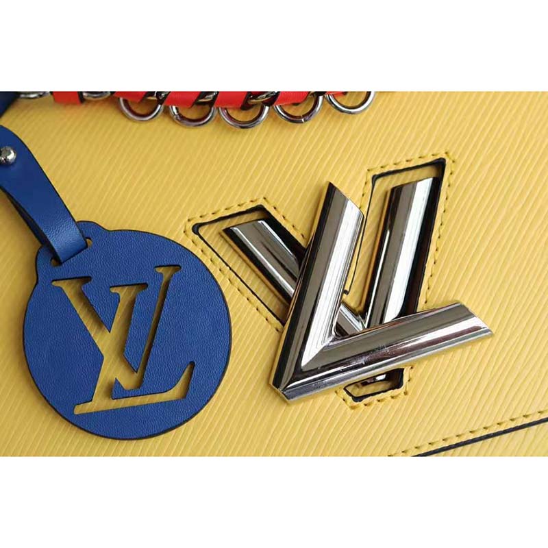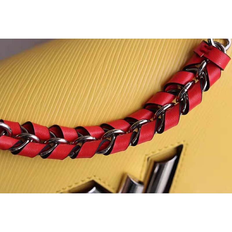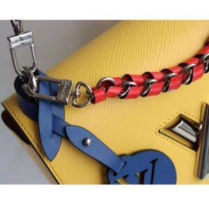 Fashioned from Epi leather and signed with the namesake transformable lock, this Twist features a short chain handle braided with contrasting leather.