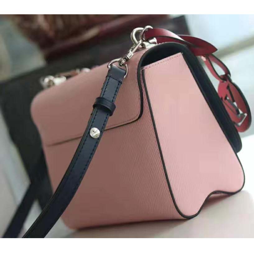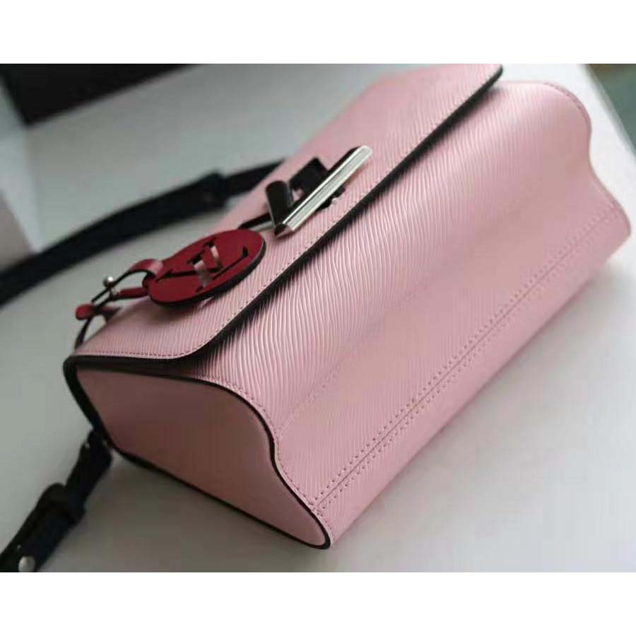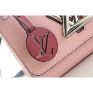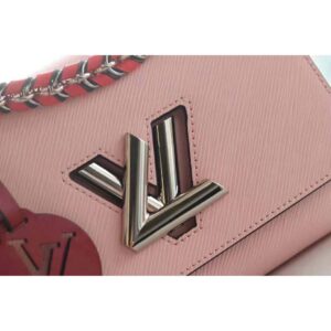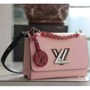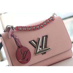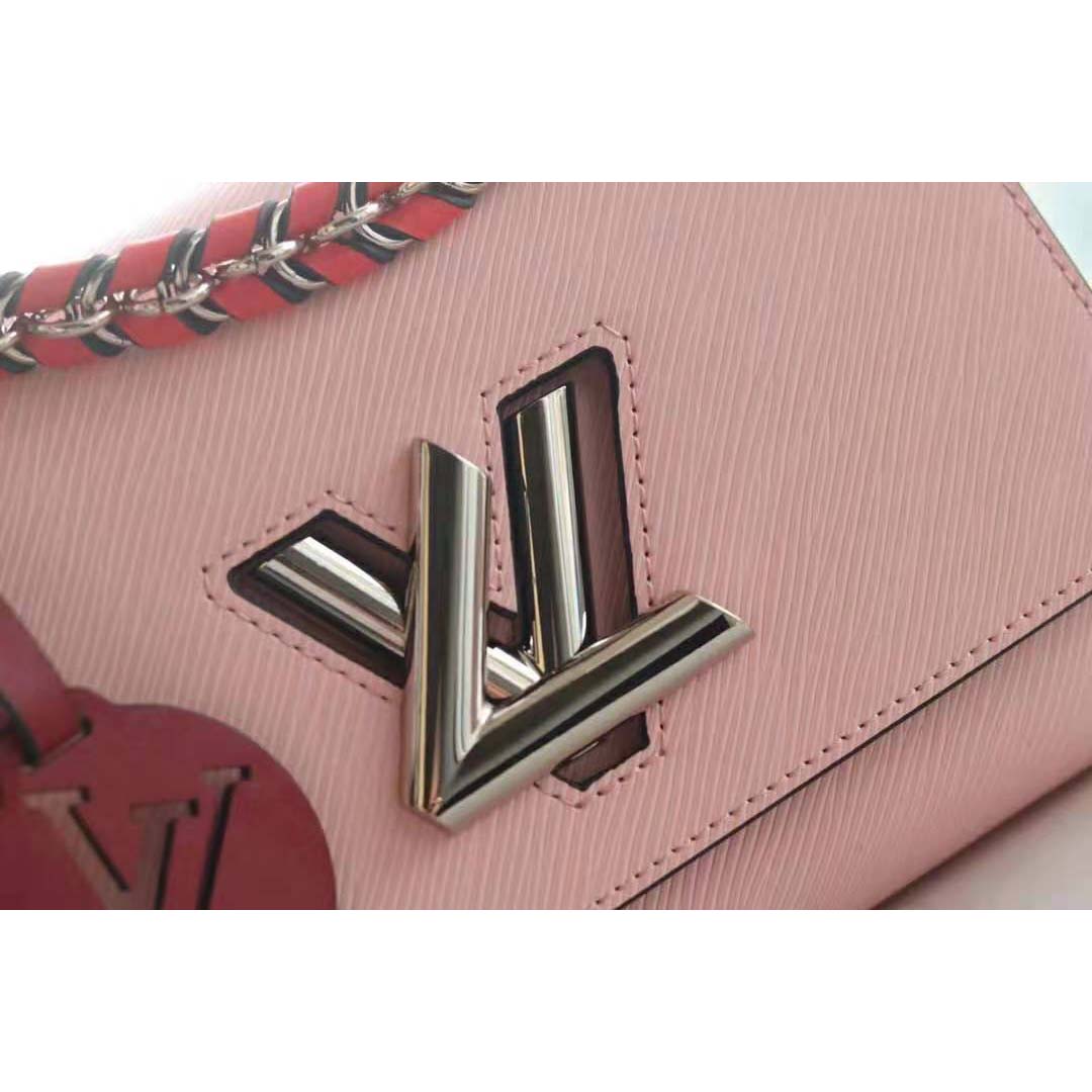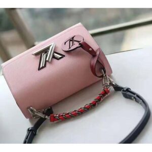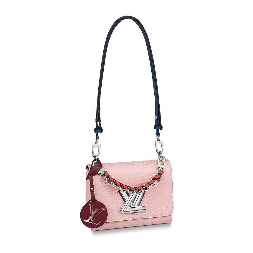 Accessorized with a braided chain handle in Pumpkin orange, a deep Bordeaux red charm and a smart leather strap, the Twist PM handbag in Rose Ballerine Pink Epi leather takes on an arts and crafts feel.