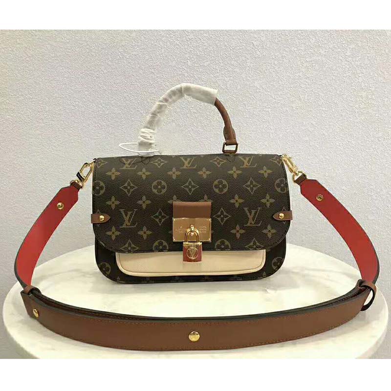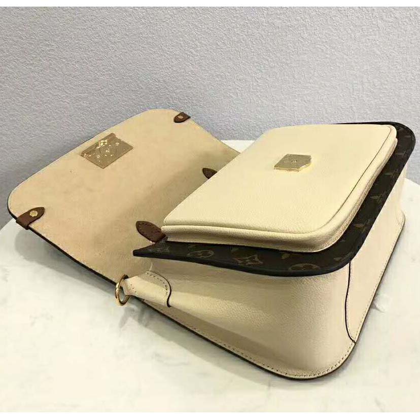 This messenger-style model in Monogram canvas features a combination of smooth and grained colored leather, for a look that is polished yet casual.