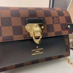 The Vavin chain wallet combines Louis Vuitton’s iconic Damier canvas with colored leather in a smart design that works for day and evening.