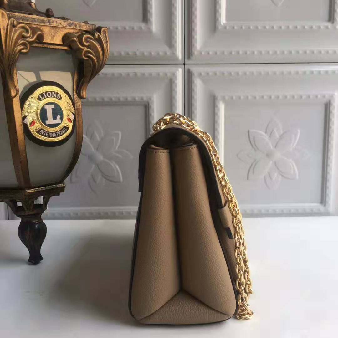 Supple and lightweight, it is a chic yet relaxed model that moves with ease from day to evening. The adjustable chain-and-leather handle adapts to shoulder or cross-body wear.