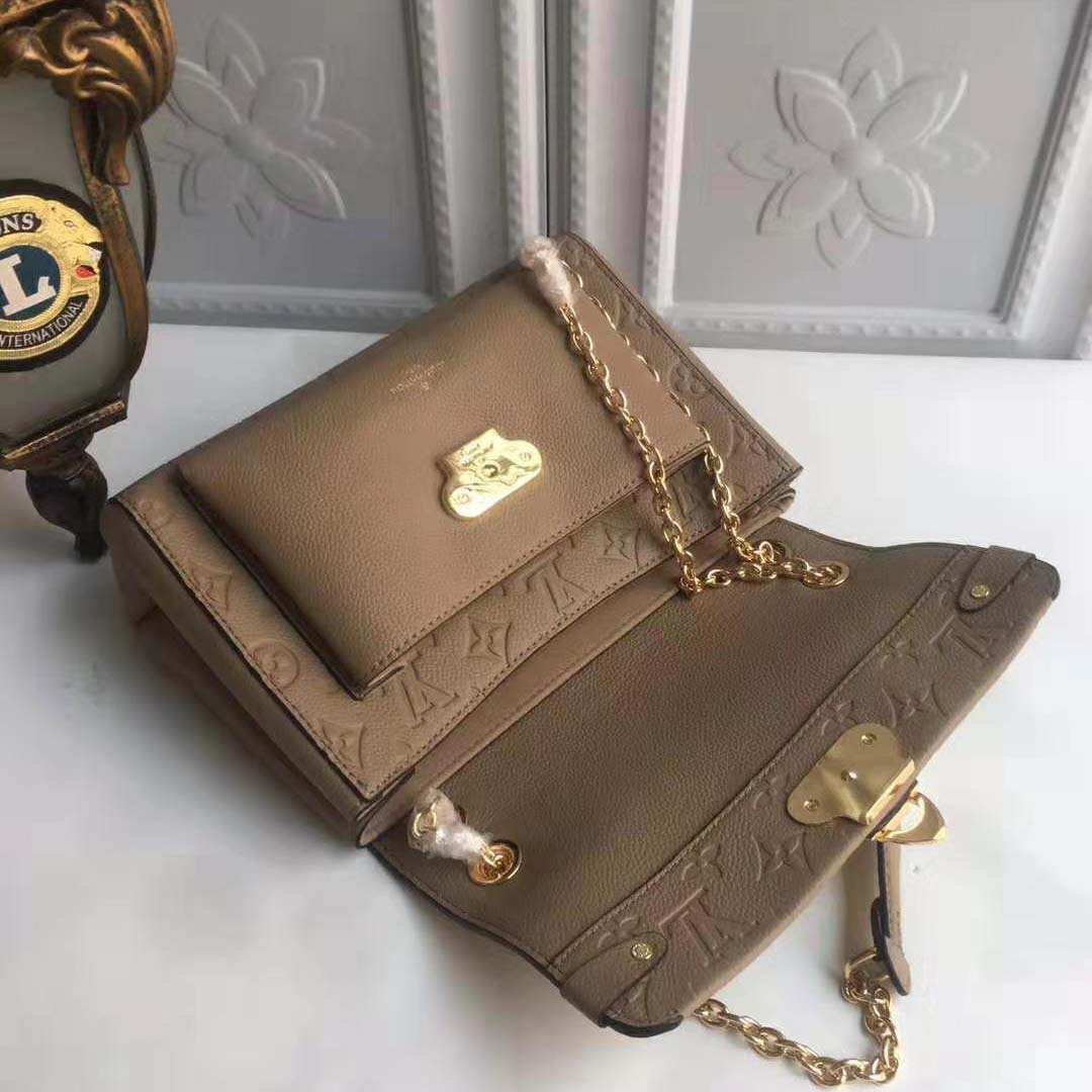 Crafted from a sophisticated mix of smooth and embossed Monogram Empreinte leather, the Vavin PM handbag is signed with a bold, shiny statement lock.