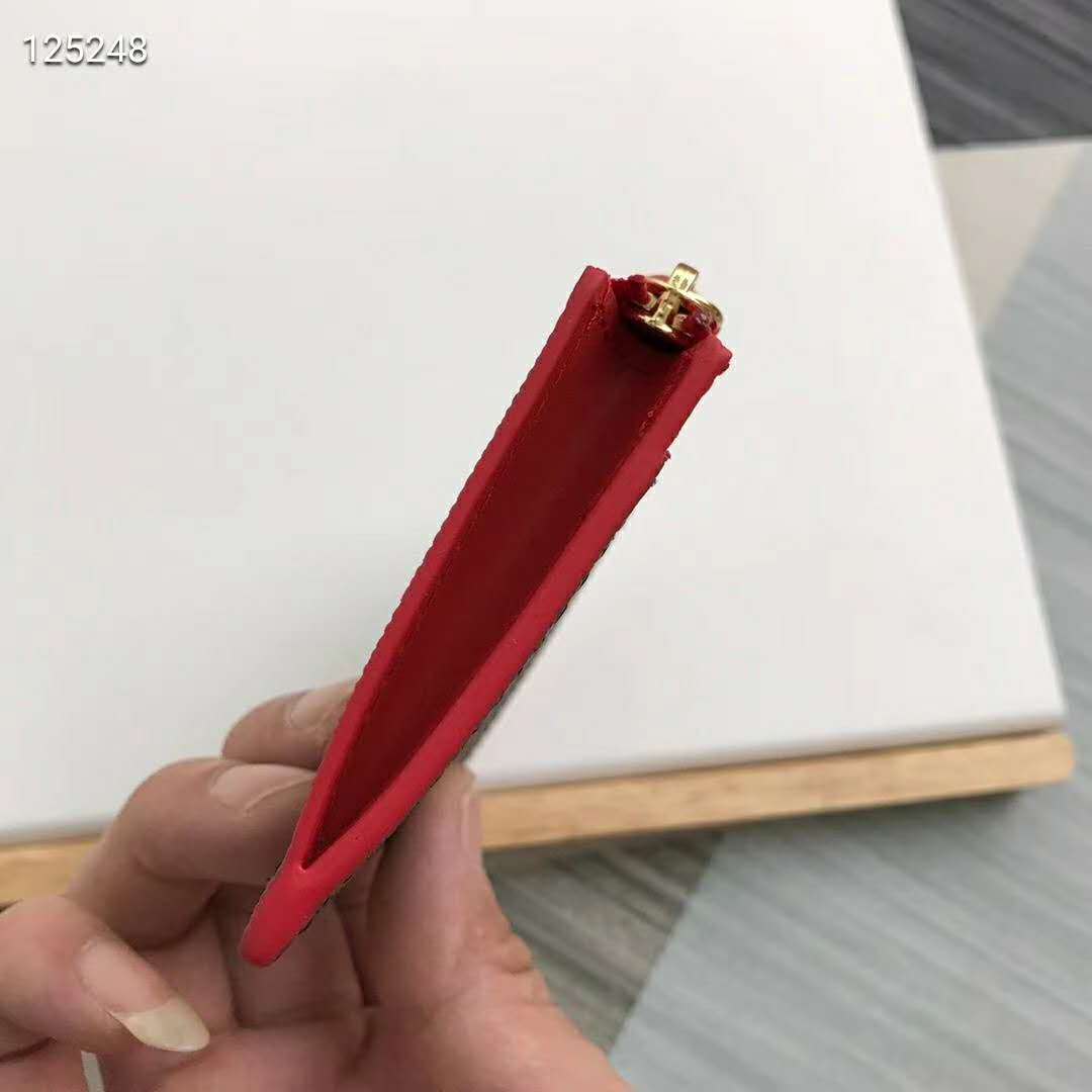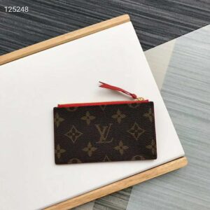 The Zipped Card Holder combines Monogram canvas with colorful grained-leather trim.