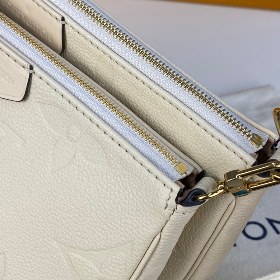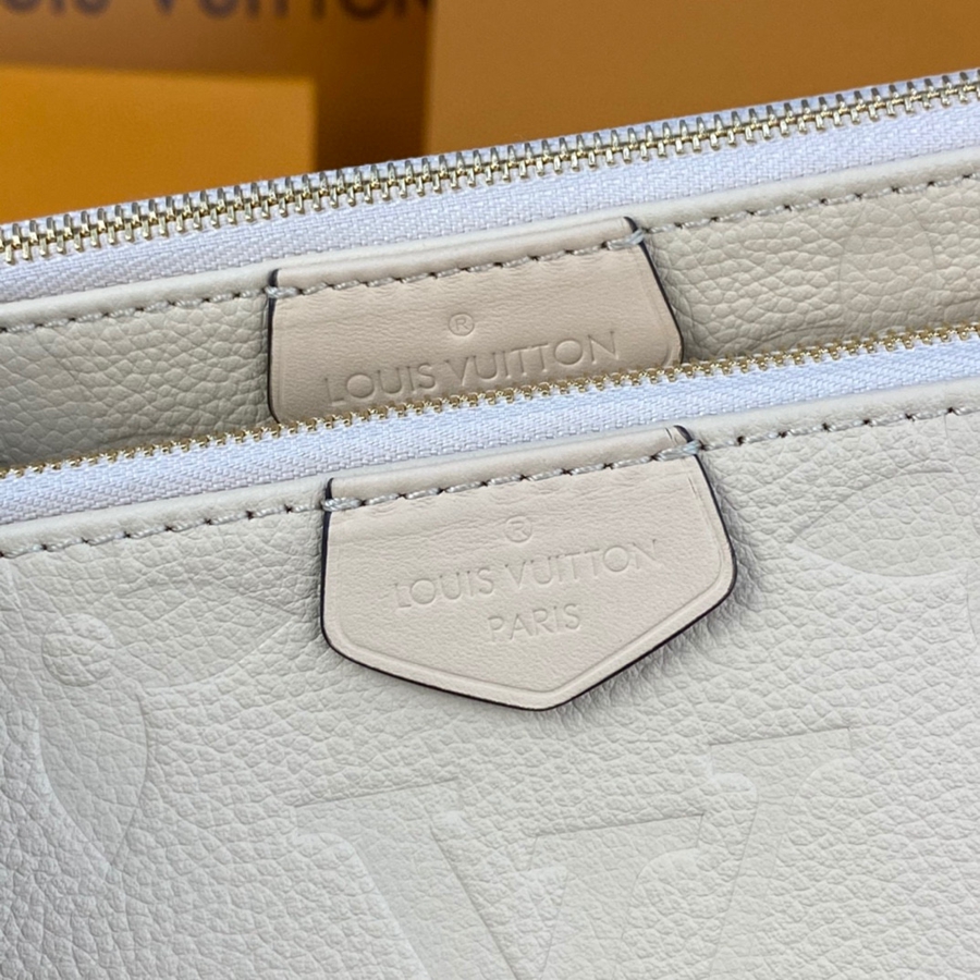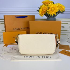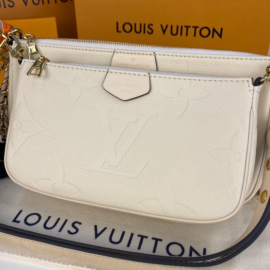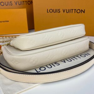 The Multi Pochette Accessoires cross-body bag takes on a striking aspect in embossed black Monogram Empreinte leather, overprinted with the Monogram motif in a cream color. Just the right size to carry a woman’s essentials, this two-in-one bag keeps things organized with its removable pouches. It’s comfortable to wear thanks to its suppleness and light weight.