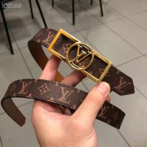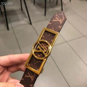 The sleek rectangular fastening features the LV Circle motif. In a classic combination of colors, this reversible piece makes a highly versatile accessory.