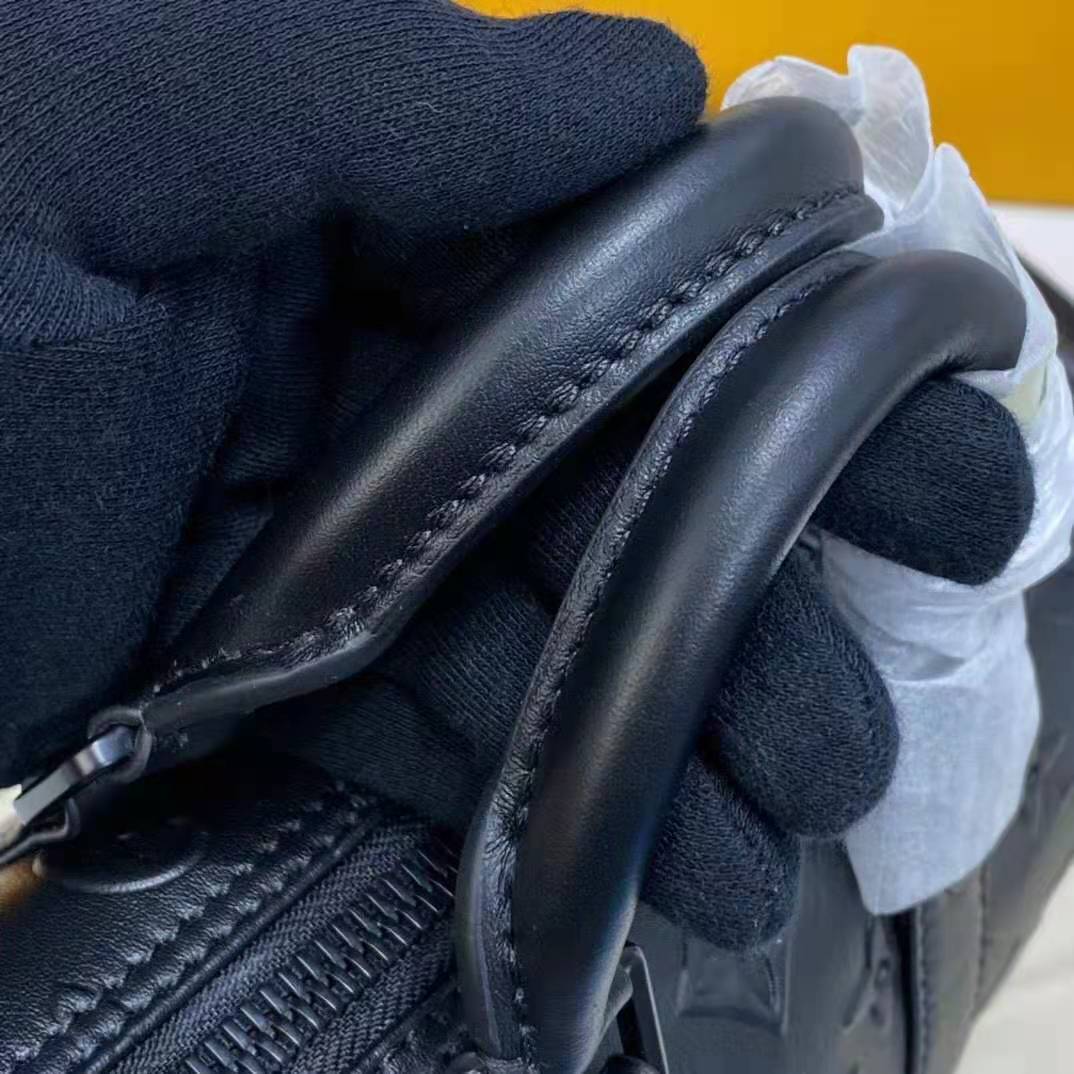 This Monogram Seal version features top-quality cowhide in elegant black, debossed with the iconic Monogram pattern for a rich tactile effect.