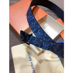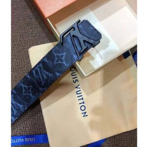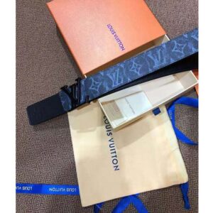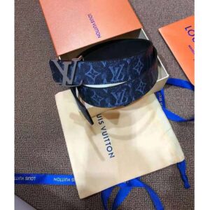 In bold contrast with the chalky look of these motifs, an LV buckle sits front and center in matte. The strap is crafted from calf leather and features a solid color on the reverse.