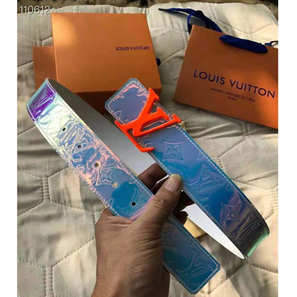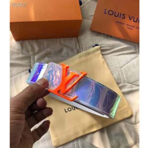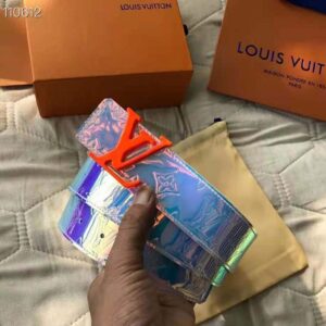 The classic Louis Vuitton LV Shape 40mm Belt gets an iridescent update with a translucent PVC strap.