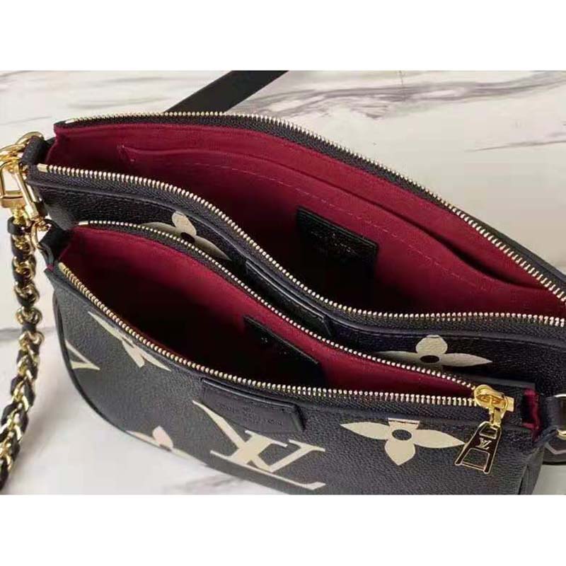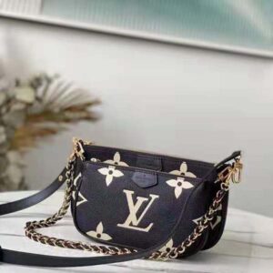 The Multi Pochette Accessoires cross-body bag takes on a striking aspect in embossed black Monogram Empreinte leather, overprinted with the Monogram motif in a cream color.