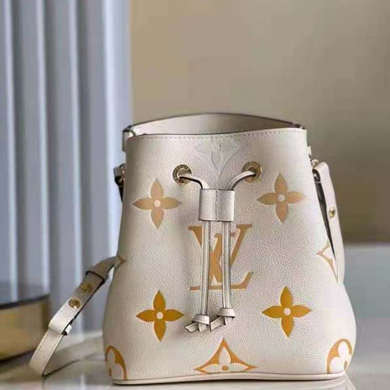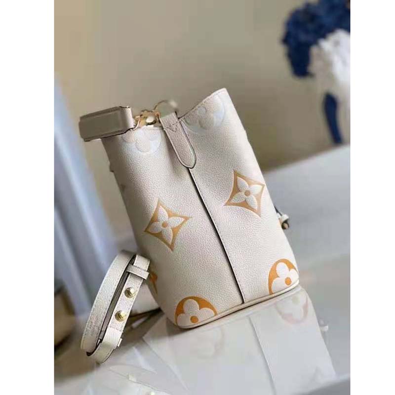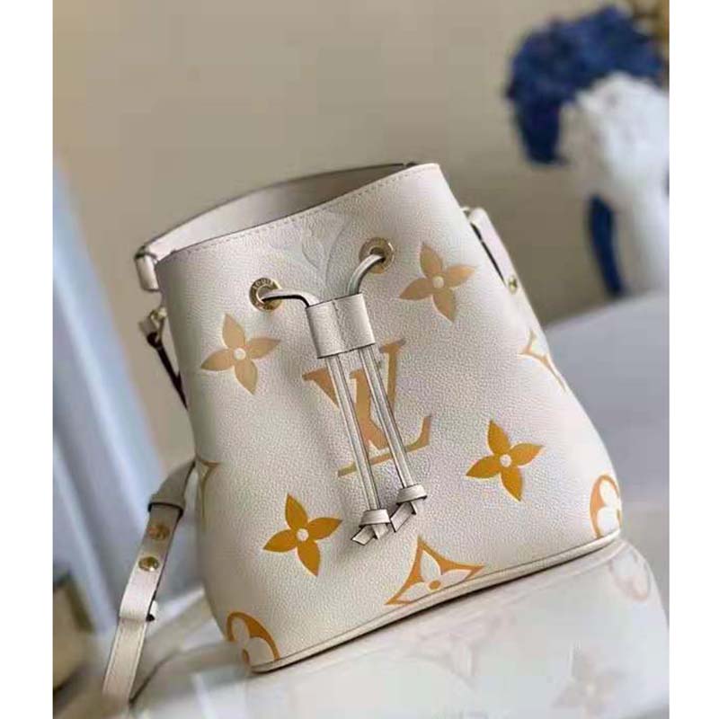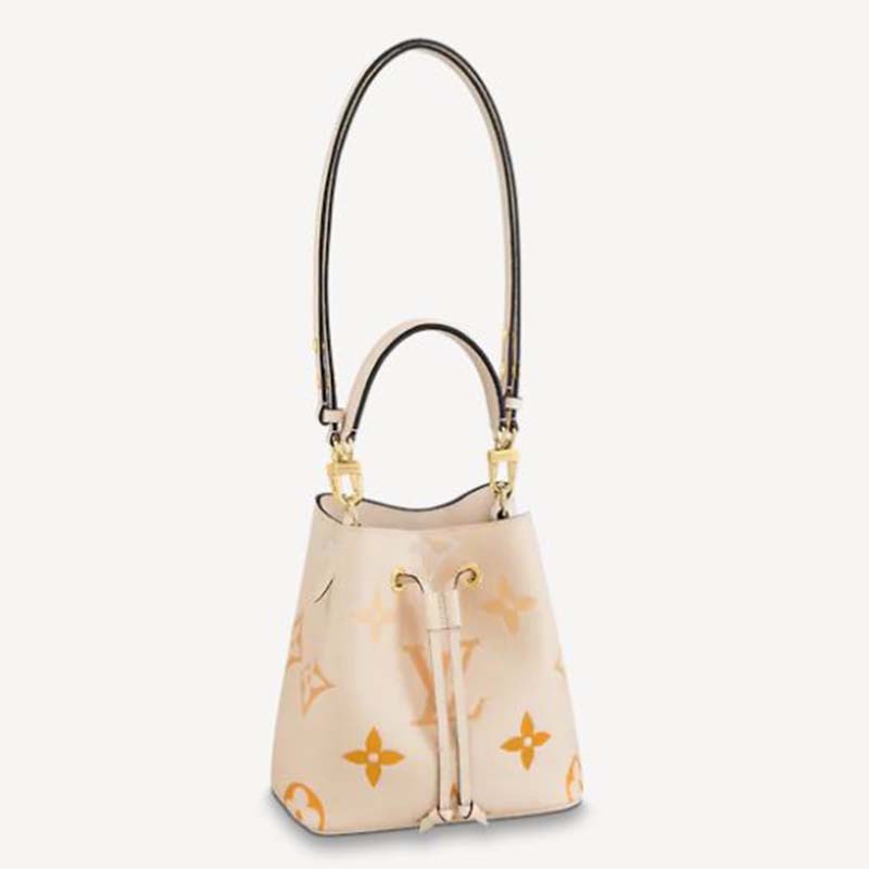 Made from two-color Monogram Empreinte leather, the gradient pastel colorway of the Monogram Giant motif brings an estival feel to this resolutely on-trend NéoNoé BB bucket bag.