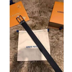 Coloured edge dying adds a twist to the Taiga leather strap, with an LV cutout contributing a subtle branded touch.