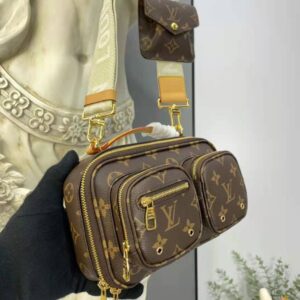 The sporty Utility Crossbody bag is made from Monogram canvas with a top handle and zip pulls in natural leather.