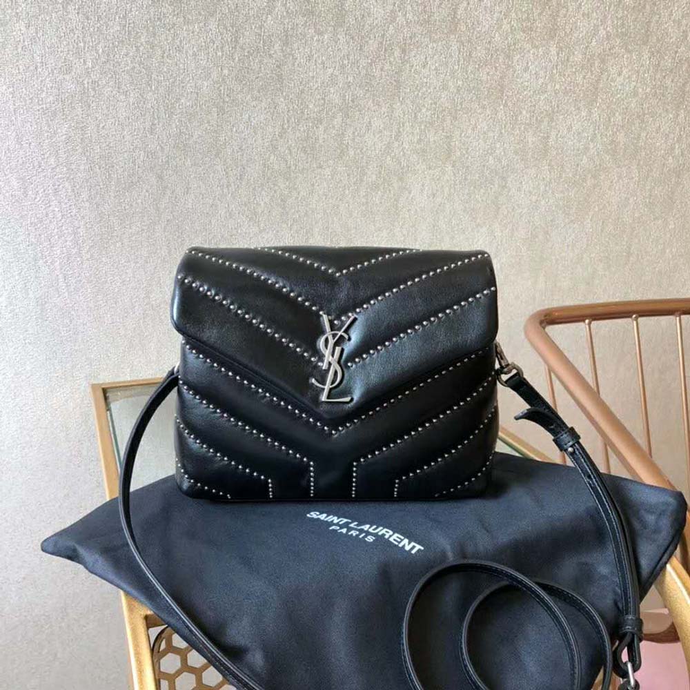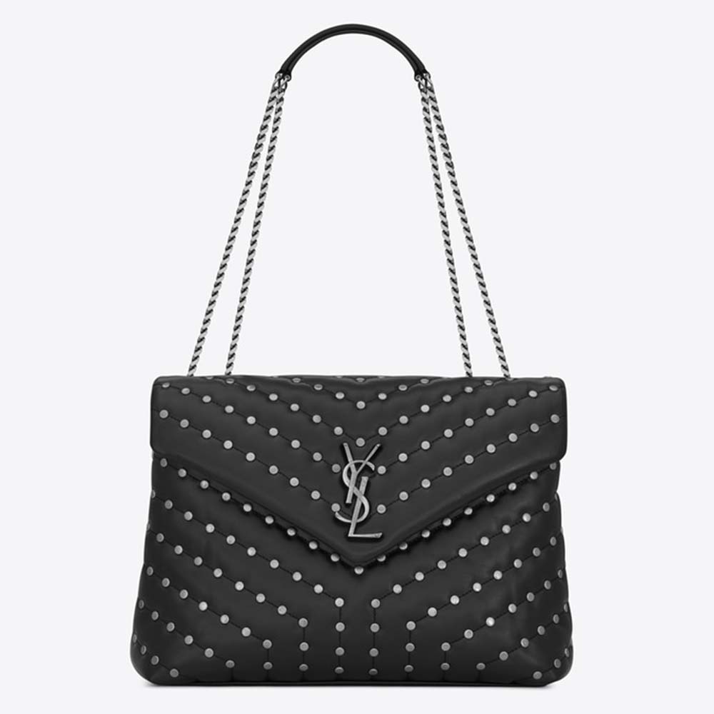 Saint Laurent YSL Women Loulou Medium Leather and Studs-Black
