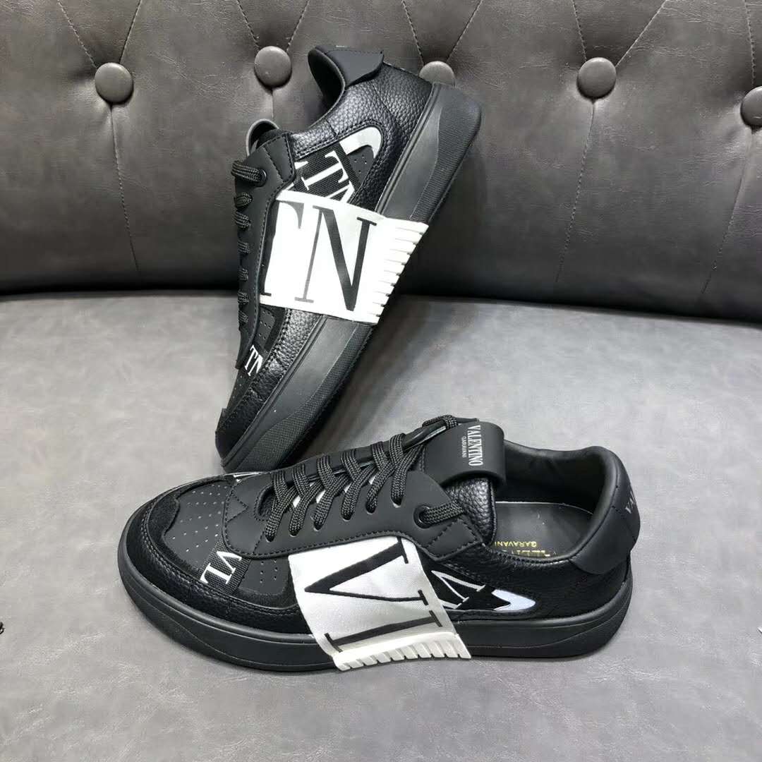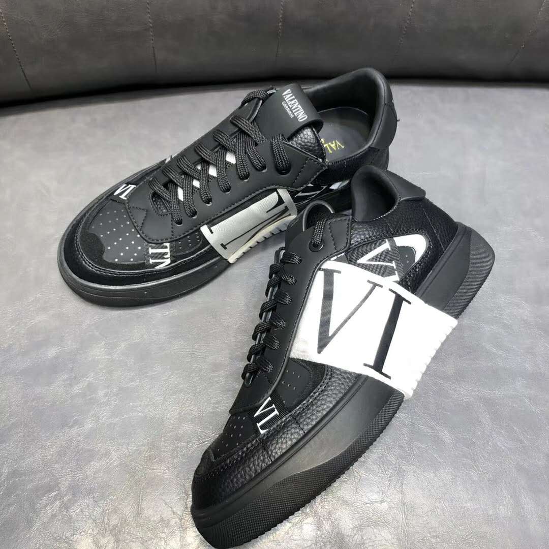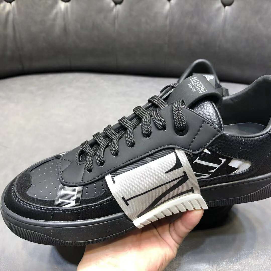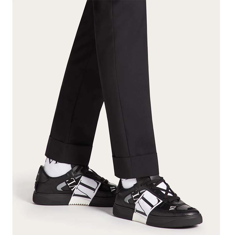 Valentino Unisex Calfskin VL7N Sneaker Bands Rubber-Effect VLTN Logo-Black
