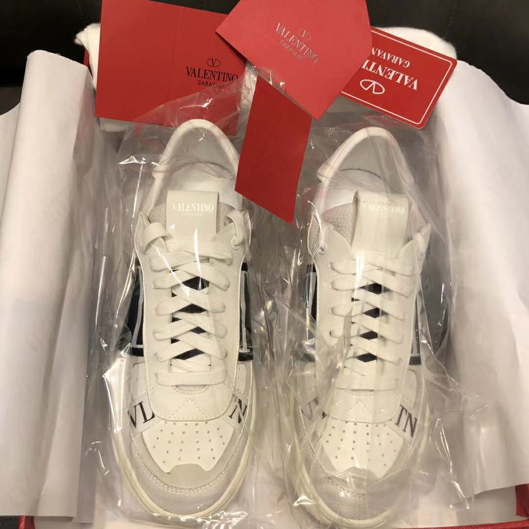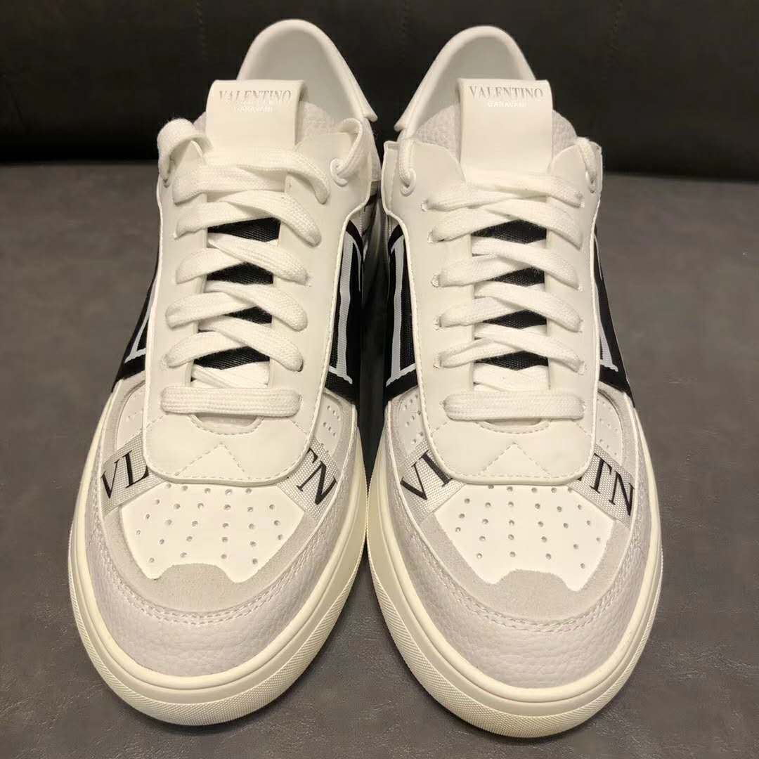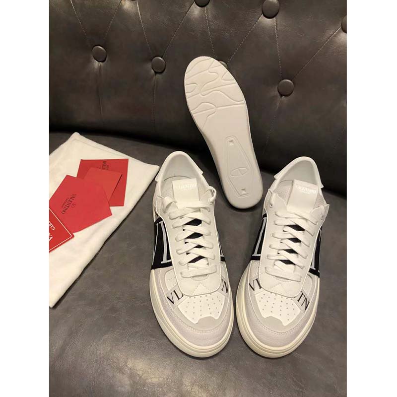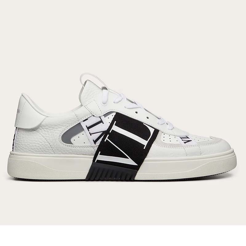 Valentino Unisex Calfskin VL7N Sneaker Bands Rubber-Effect VLTN Logo-White