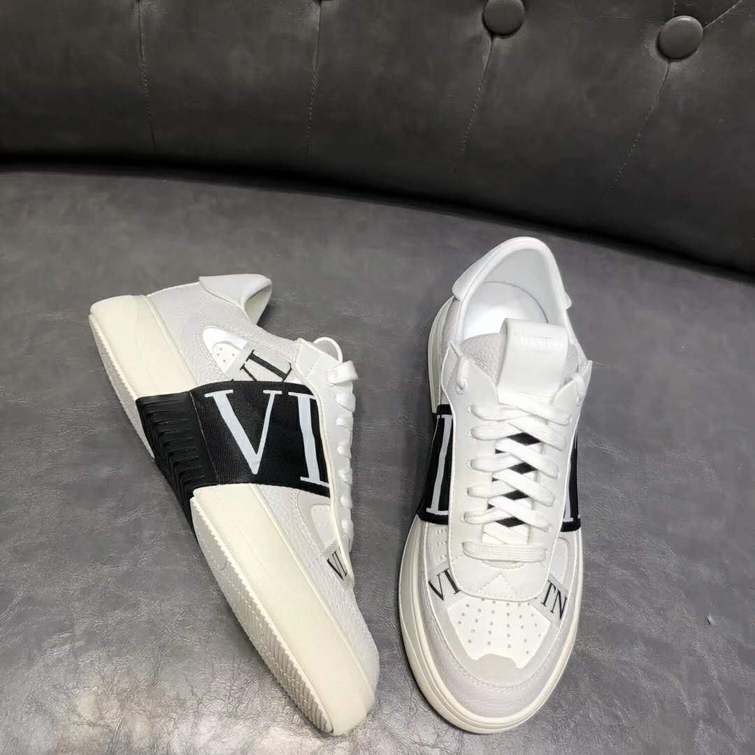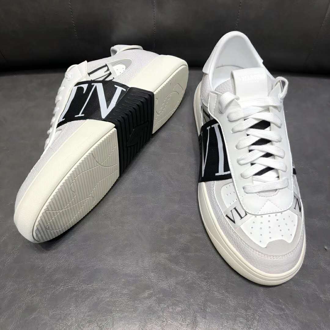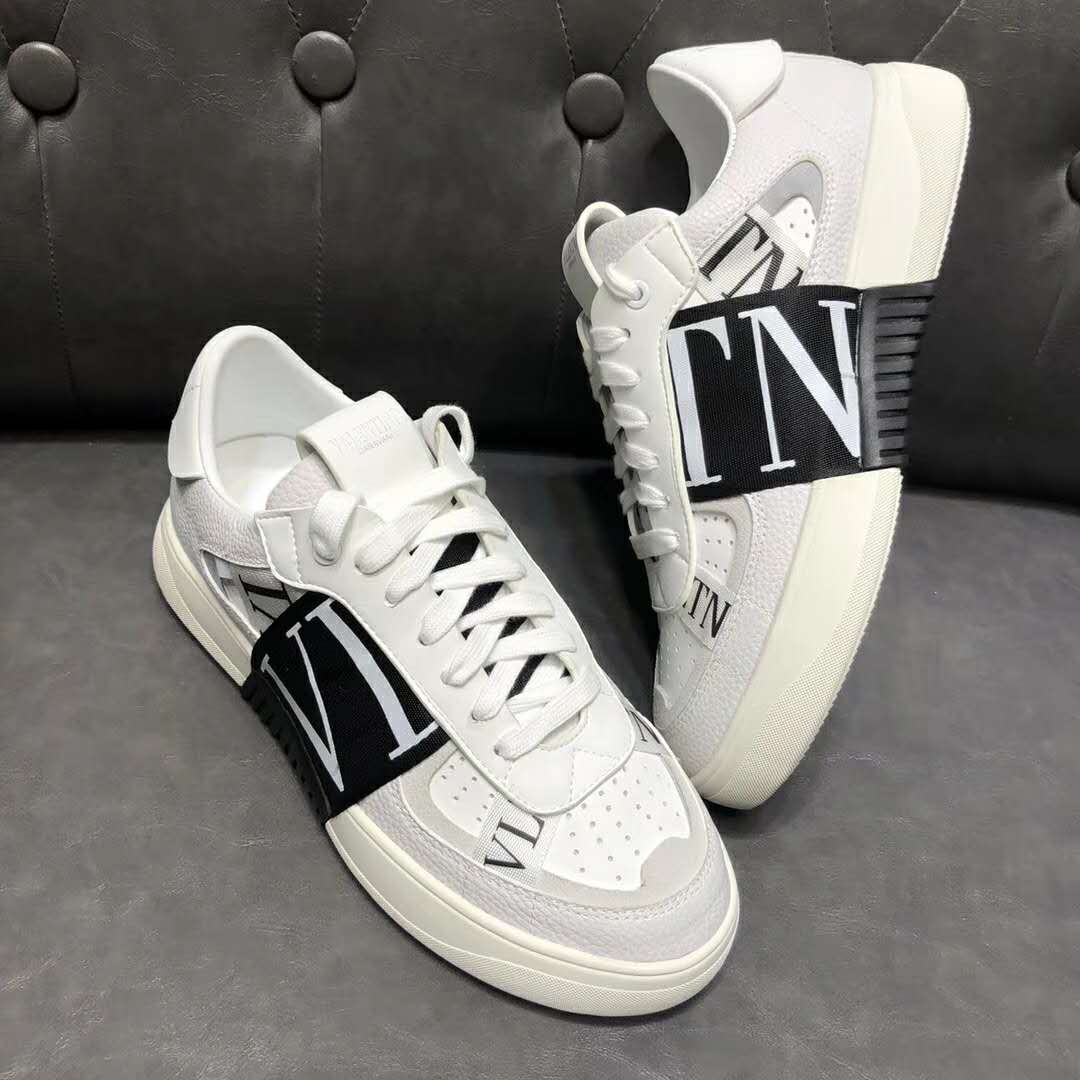 Valentino Unisex Calfskin VL7N Sneaker Bands Rubber-Effect VLTN Logo-White