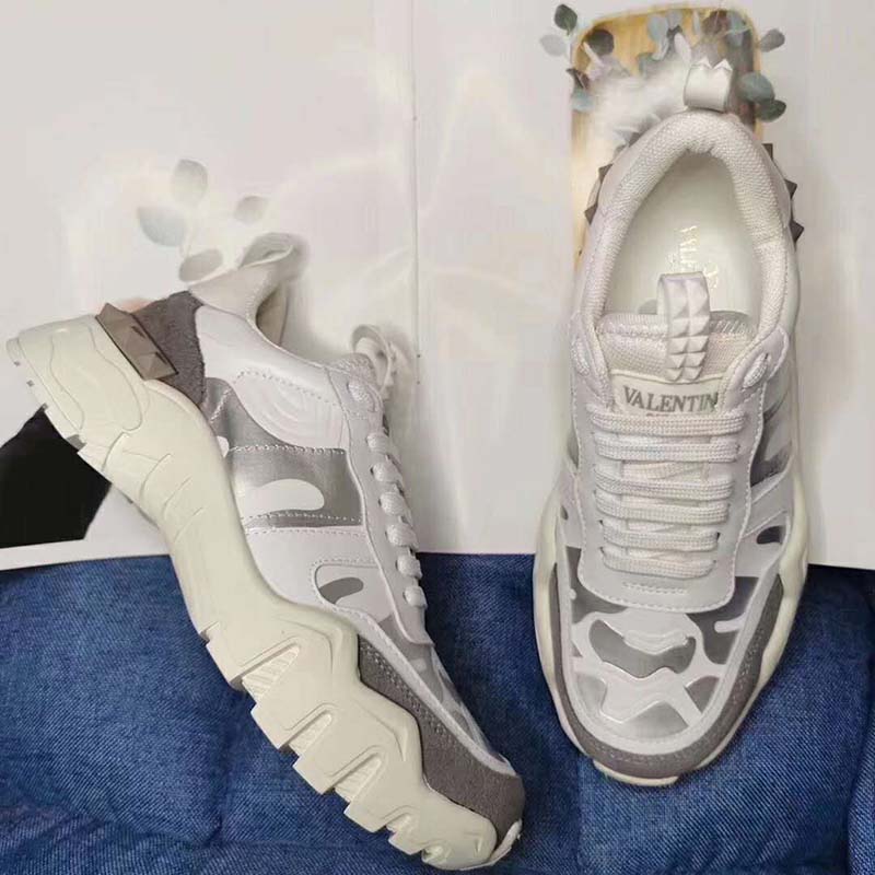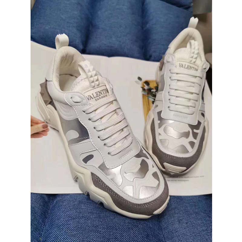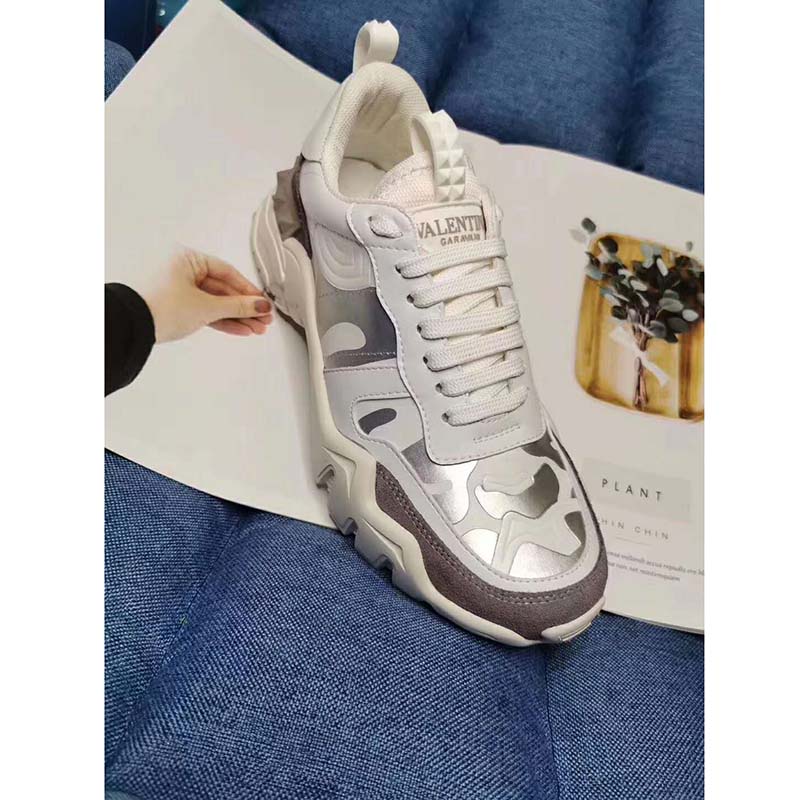 Valentino Garavani Camouflage Rockrunner Plus fabric sneaker with raised details.