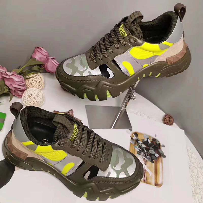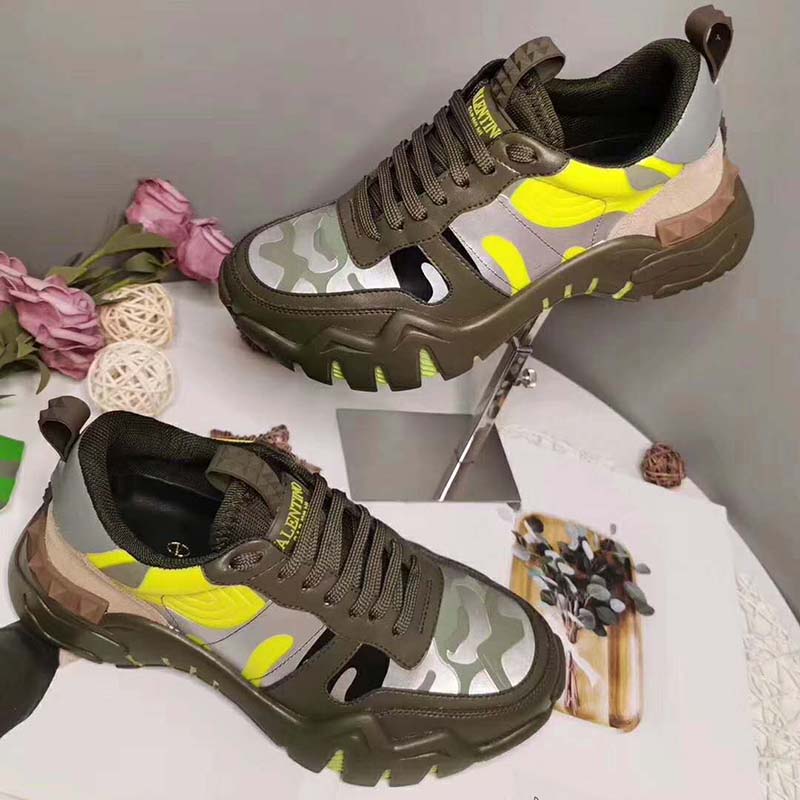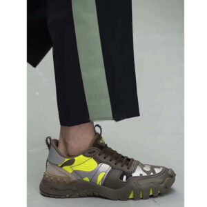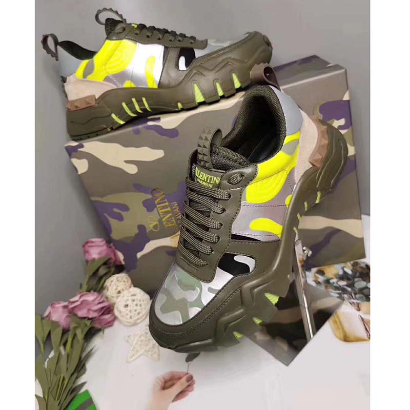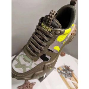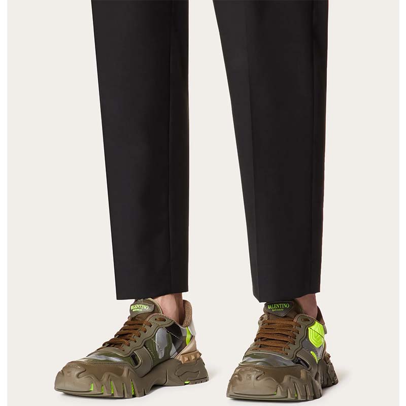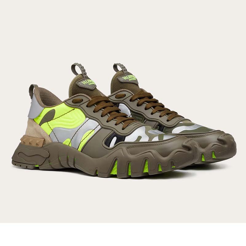 Valentino Unisex Camouflage Rockrunner Plus Sneaker Raised Details-Lime