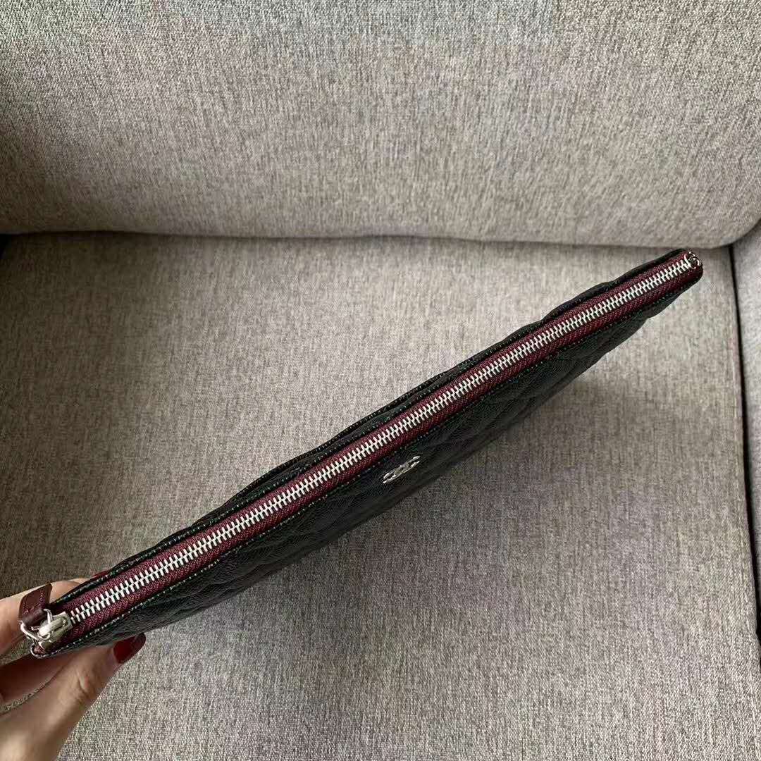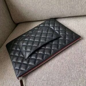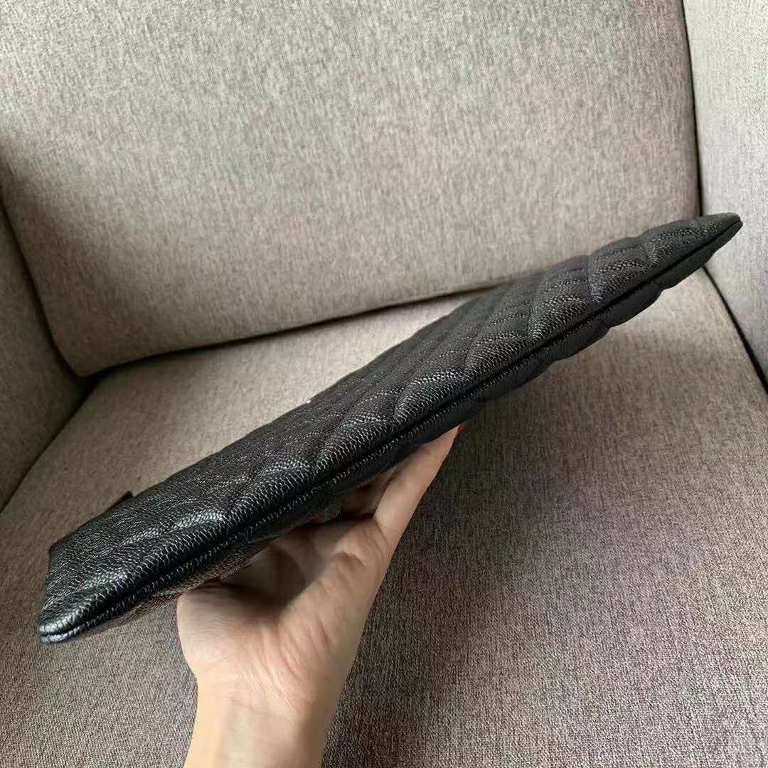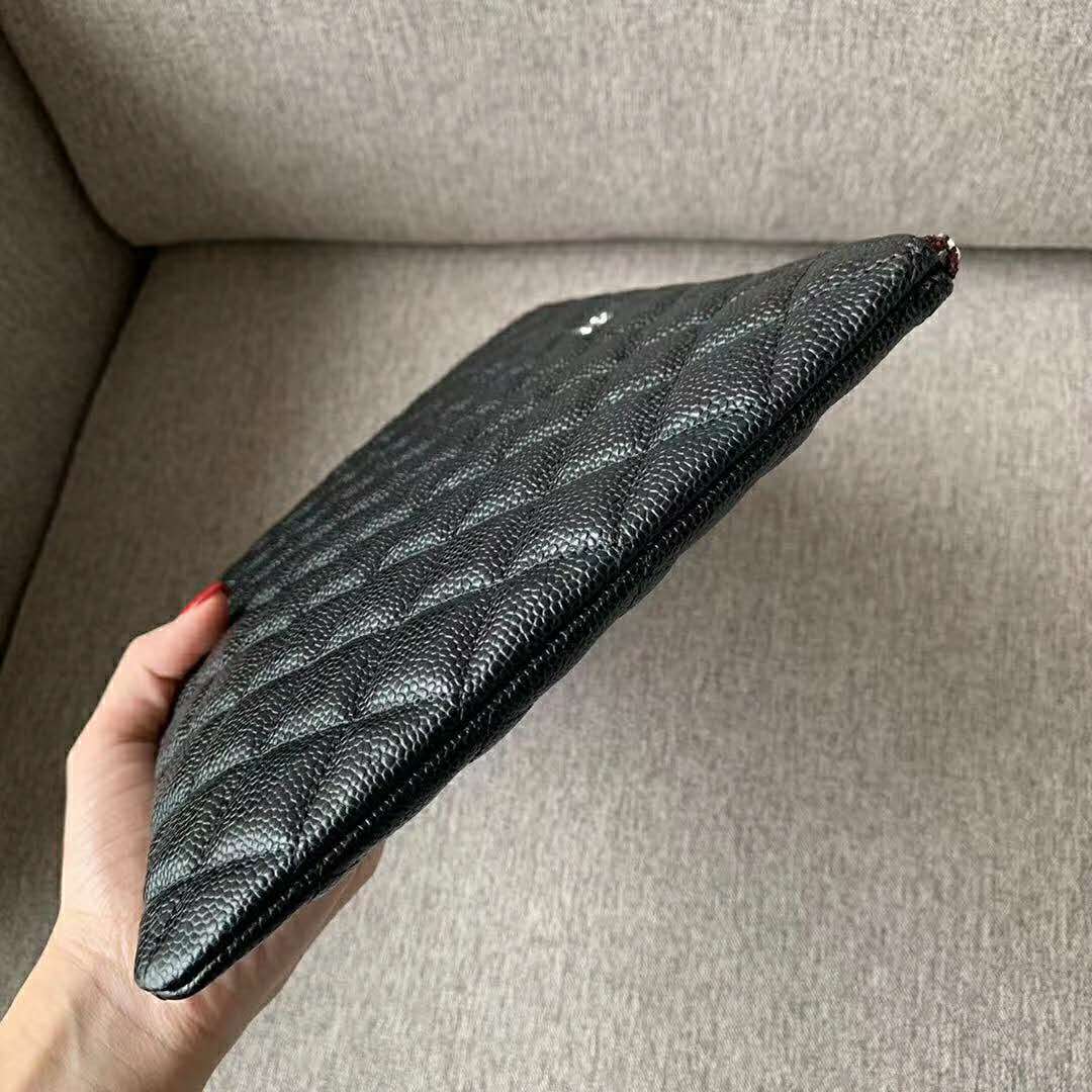 Chanel Women Classic Large Pouch in Grained Calfskin Leather-Black
