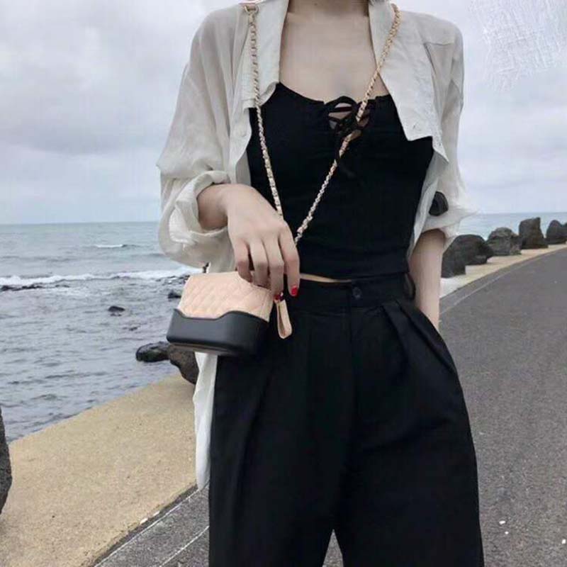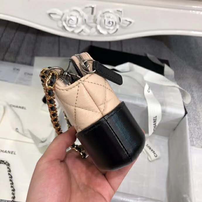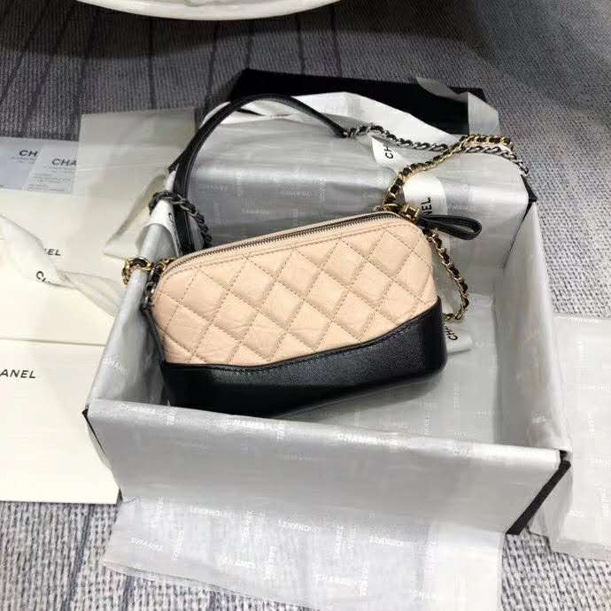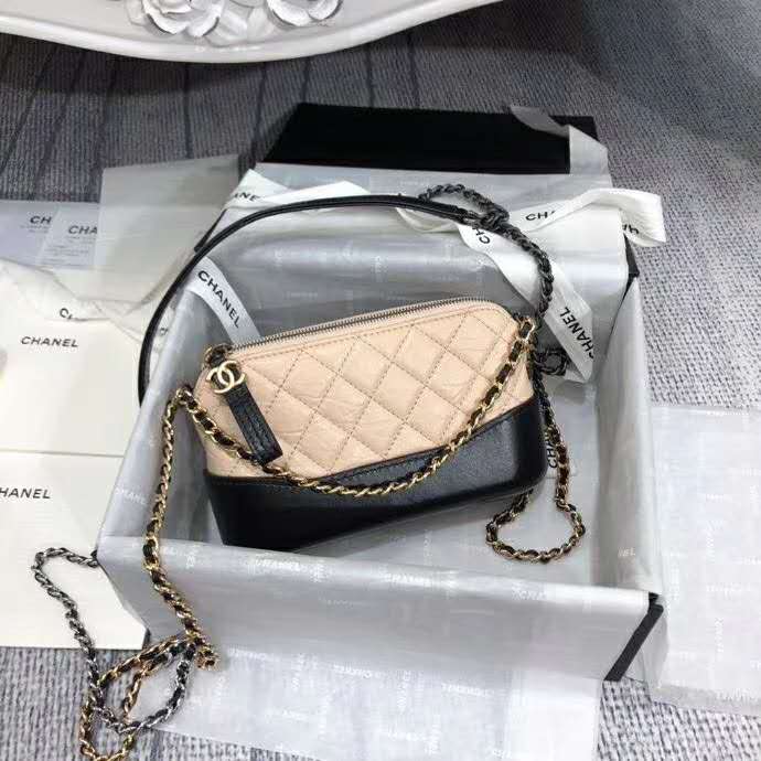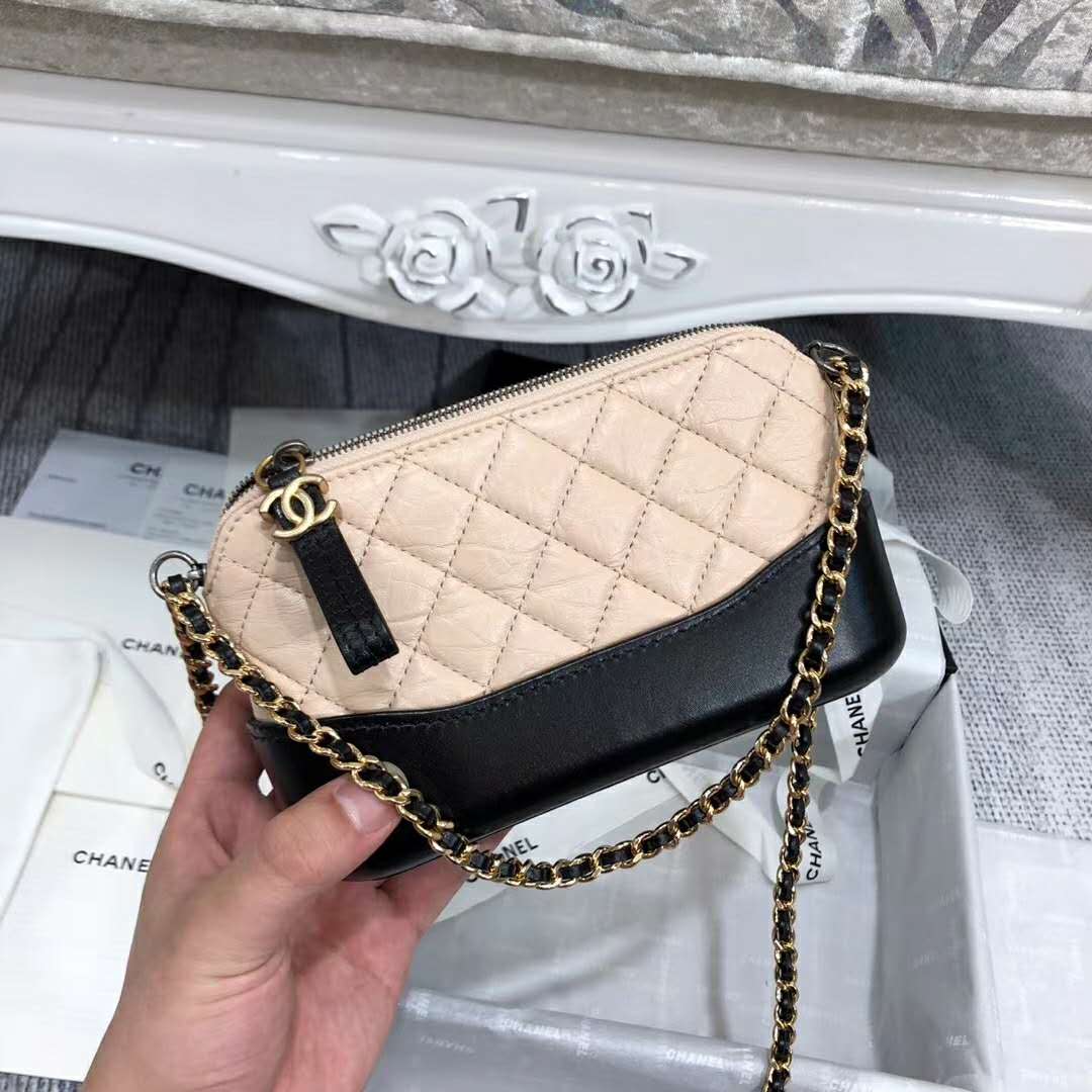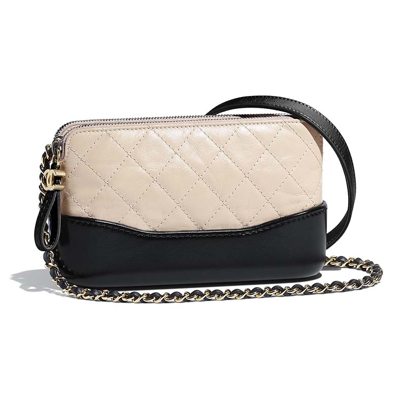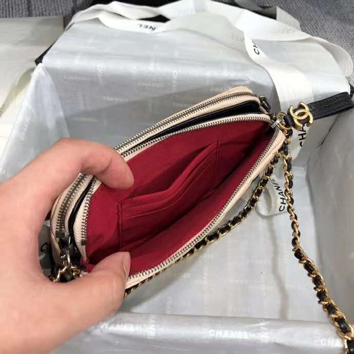 Chanel Women Clutch with Chain Aged Smooth Calfskin Beige & Black