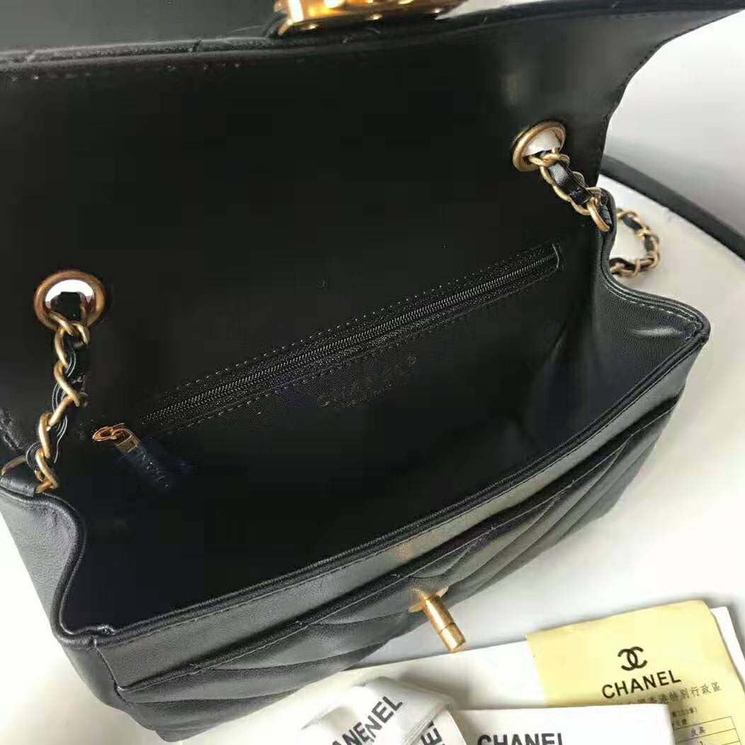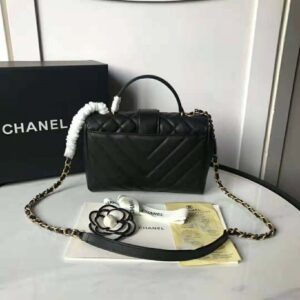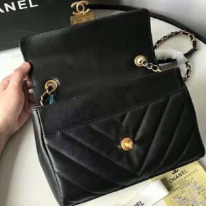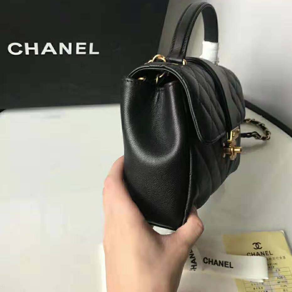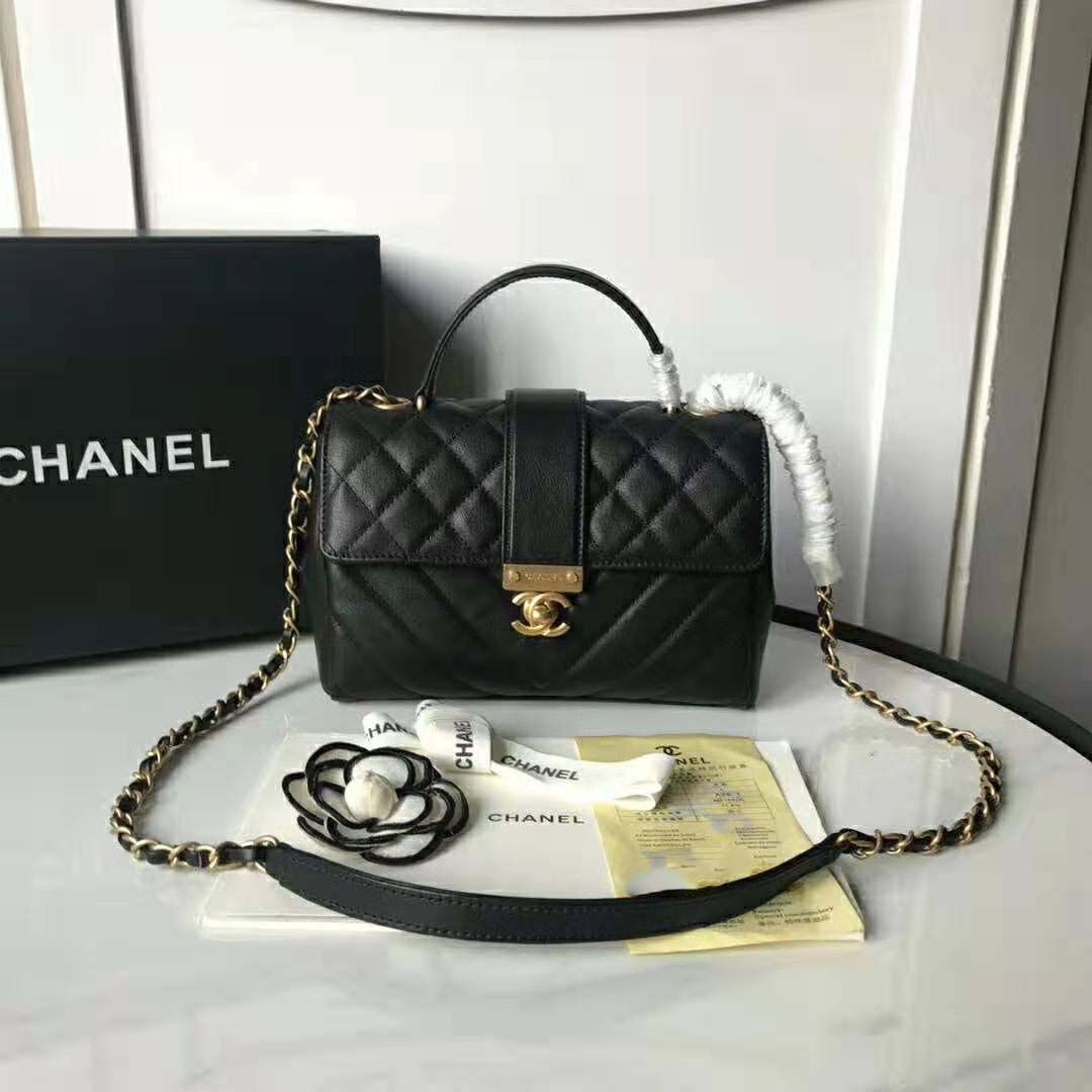 Flap bag with top handleCalfskin & Gold-Tone Metal Black