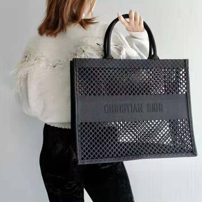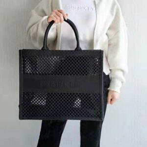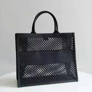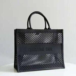 Ideally designed to carry all your daily essentials, the large shape is crafted in black cotton that has been embroidered with a mesh effect and boasts a ‘Christian Dior’ signature on the front. This carryall is a perfect example of the Dior savoir-faire.