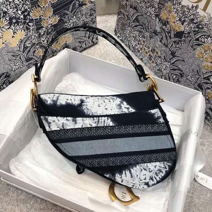 DIOR Saddle Bag Blue Multicolor Tie & Dior Embroidery