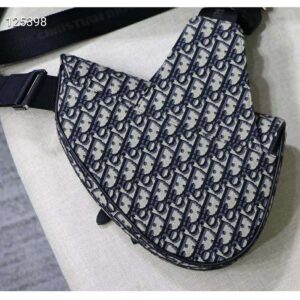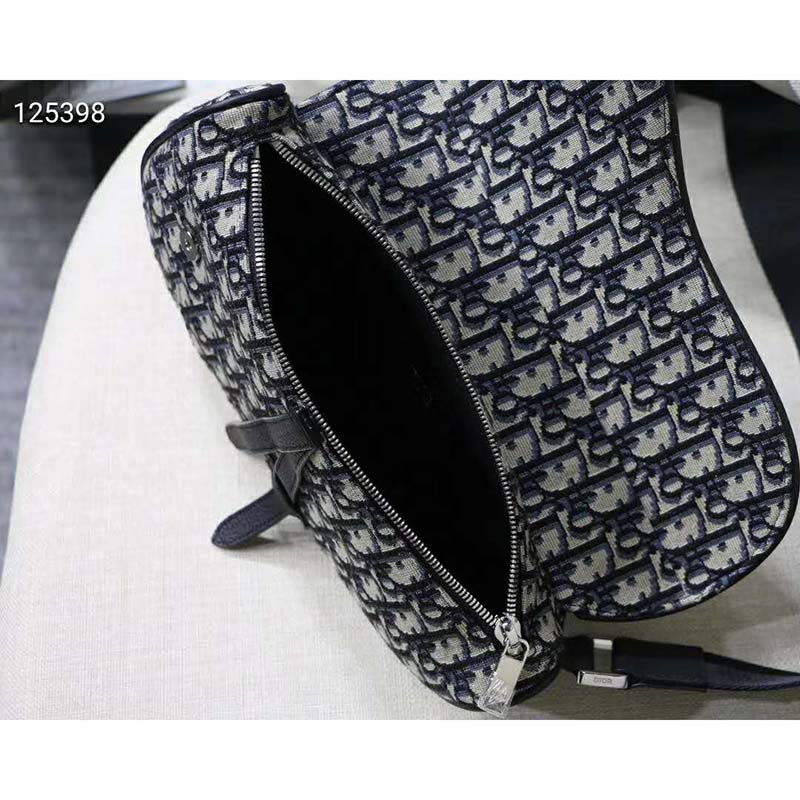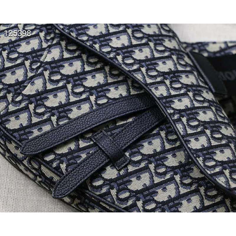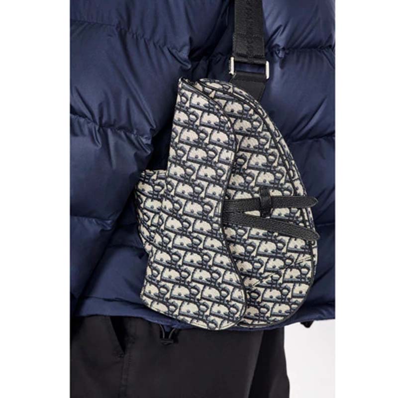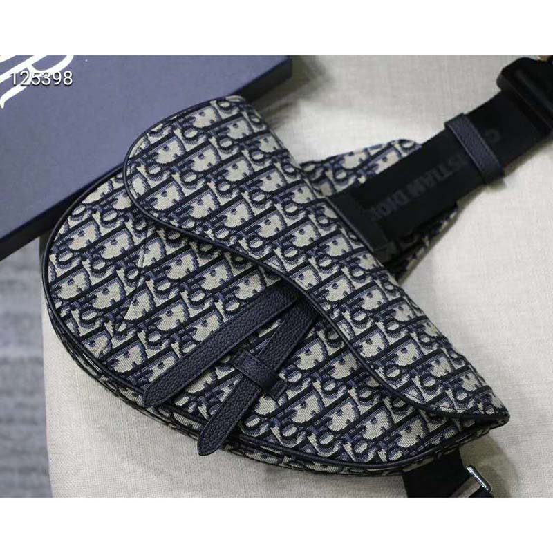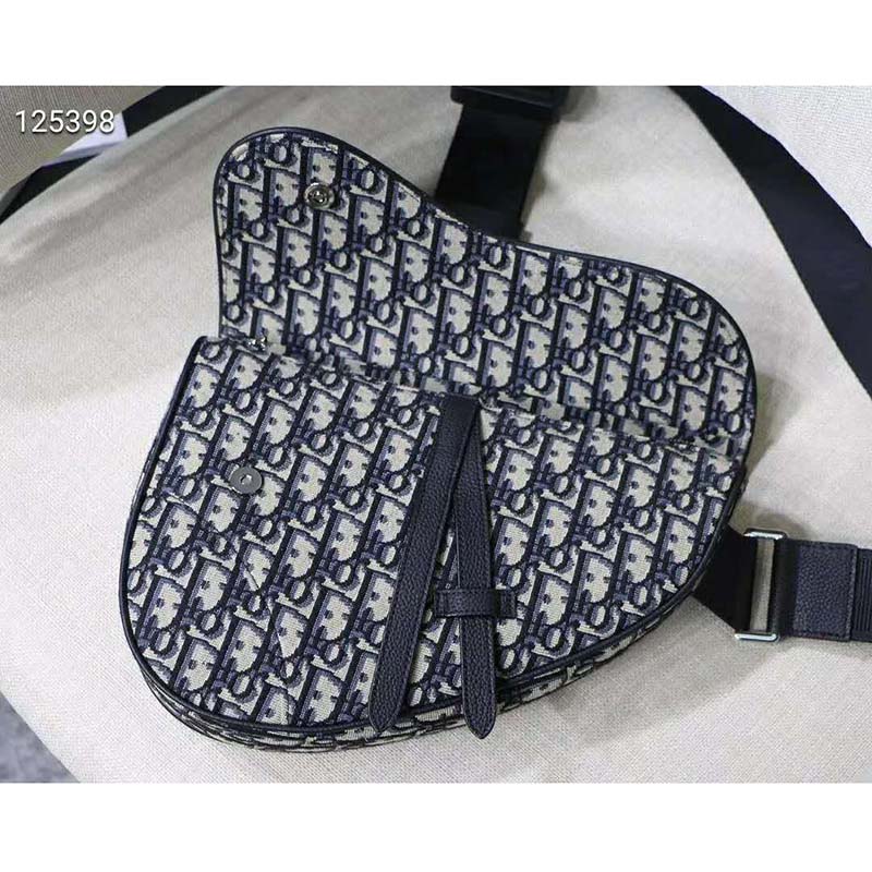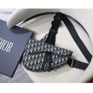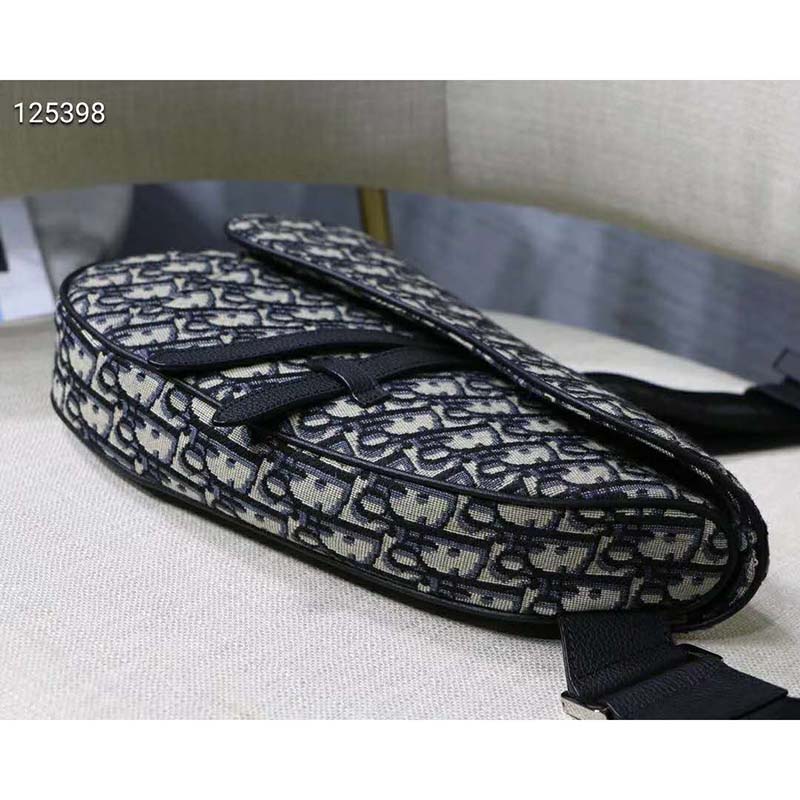 Saddle bag in Dior Oblique canvas and black grained calfskin with Christian Dior buckle detail.