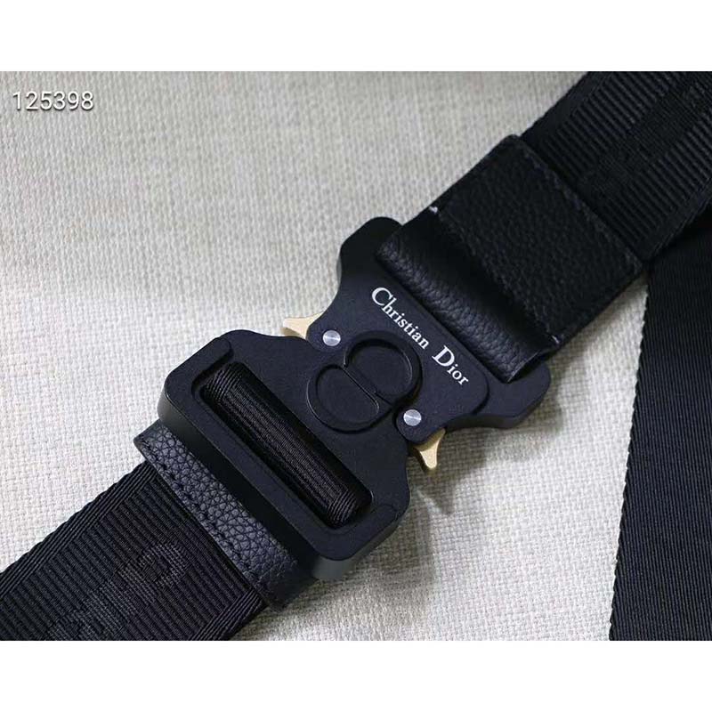 Adjustable shoulder strap in black Christian Dior jacquard with black grained calfskin trim and CD buckle
