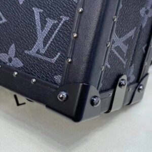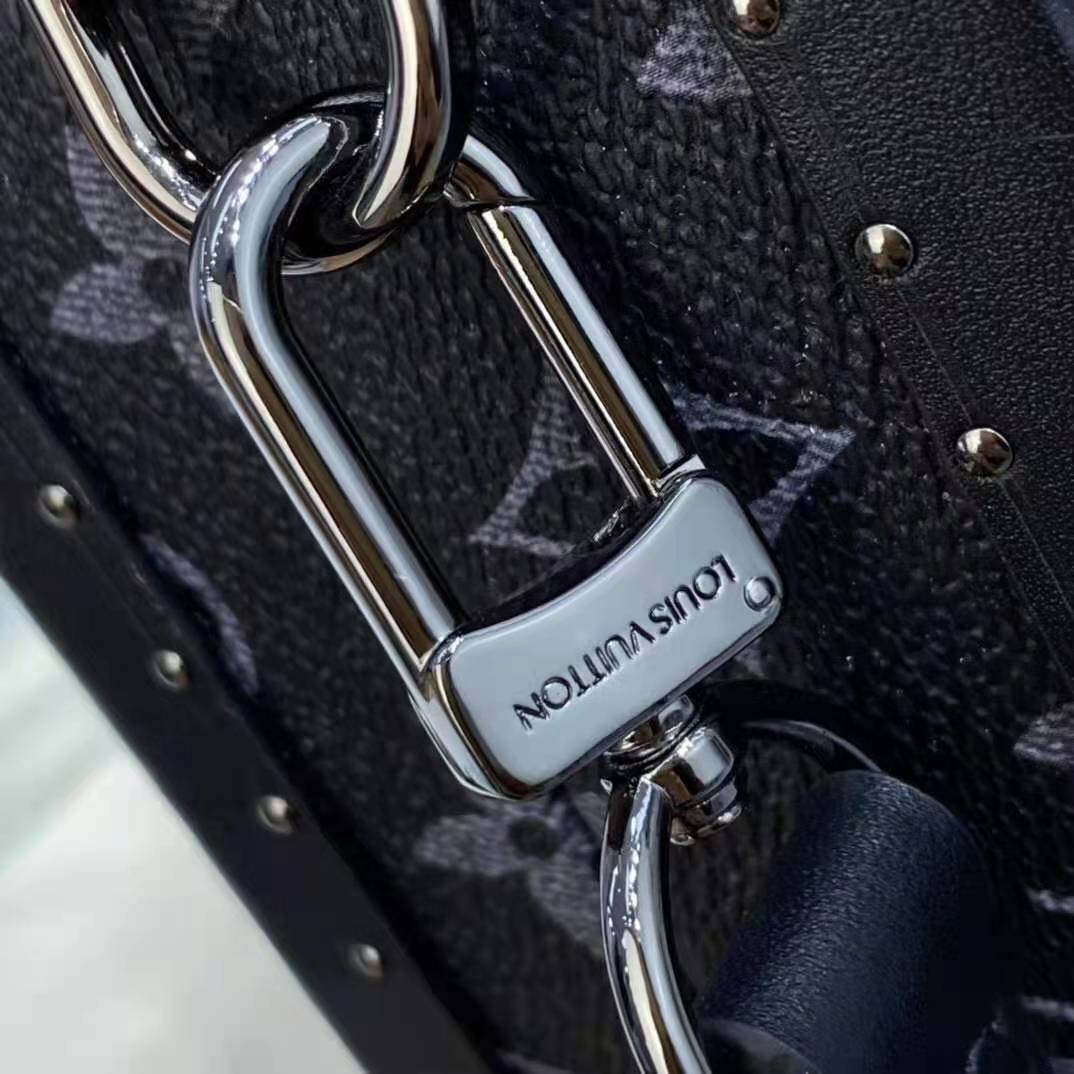 The Clutch Box bag in Monogram Eclipse canvas with black-leather trim and Ruthenium-color buckles was first seen at the Spring-Summer 2020 show.