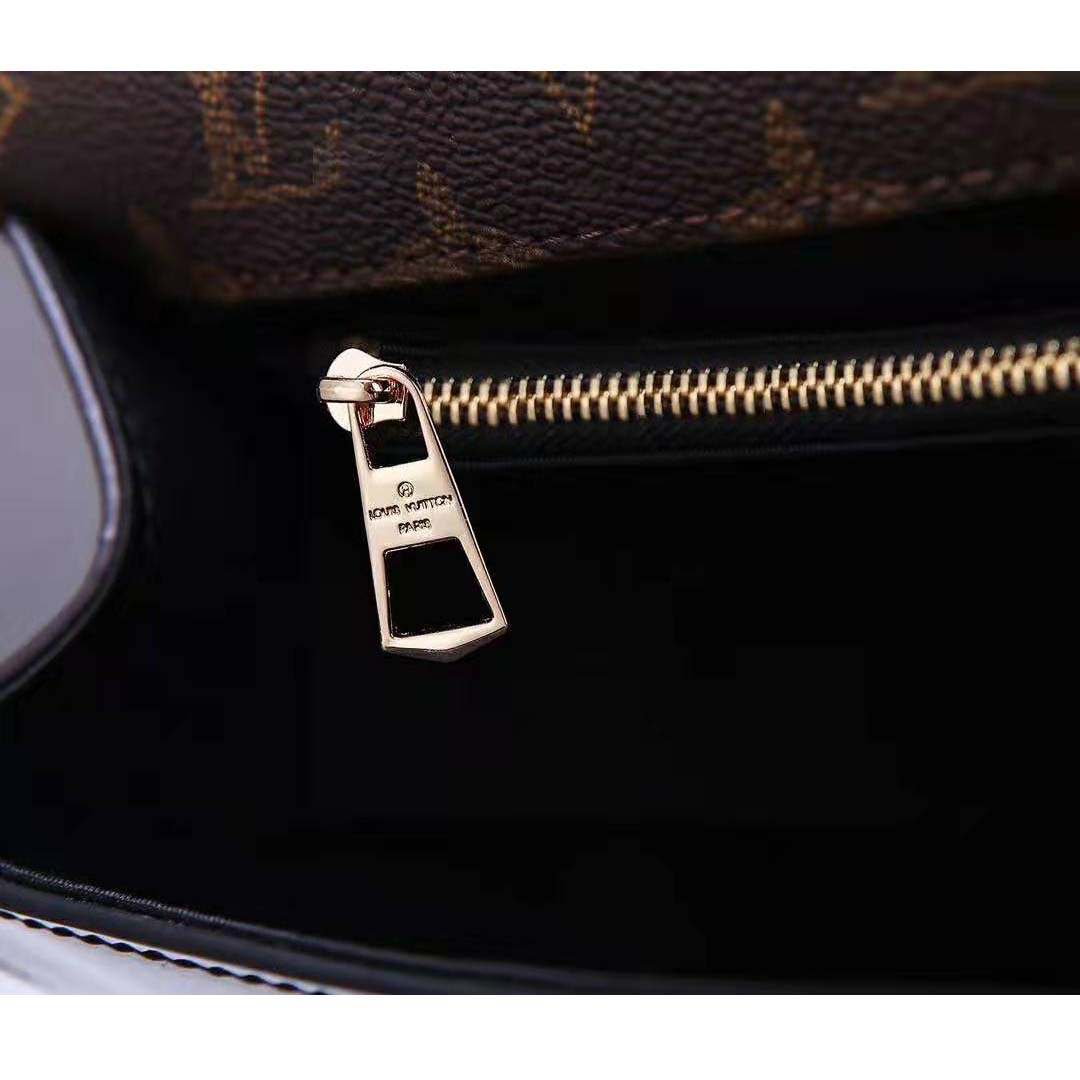 Smooth patent cowhide leather & Monogram coated-canvas trim