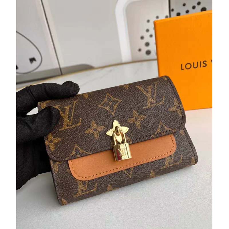 The Flower compact wallet is an elegant, feminine design playing on two iconic Louis Vuitton signatures: the Monogram flower and the padlock.