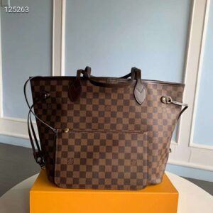 Crafted from elegant Damier Ebene canvas with natural cowhide trim, it is ultra-roomy but never bulky, with side laces that cinch for a sleek allure or loosen for a more casual look.