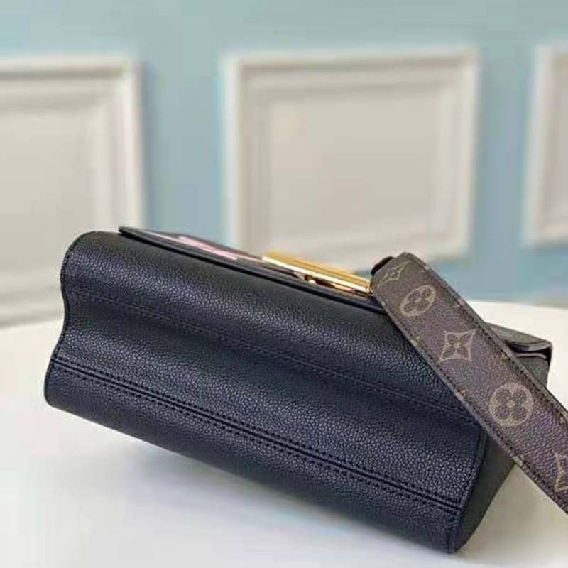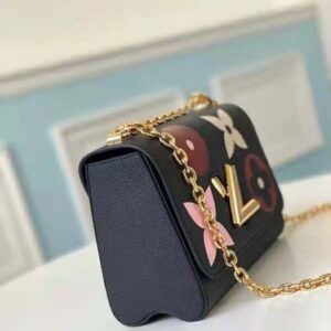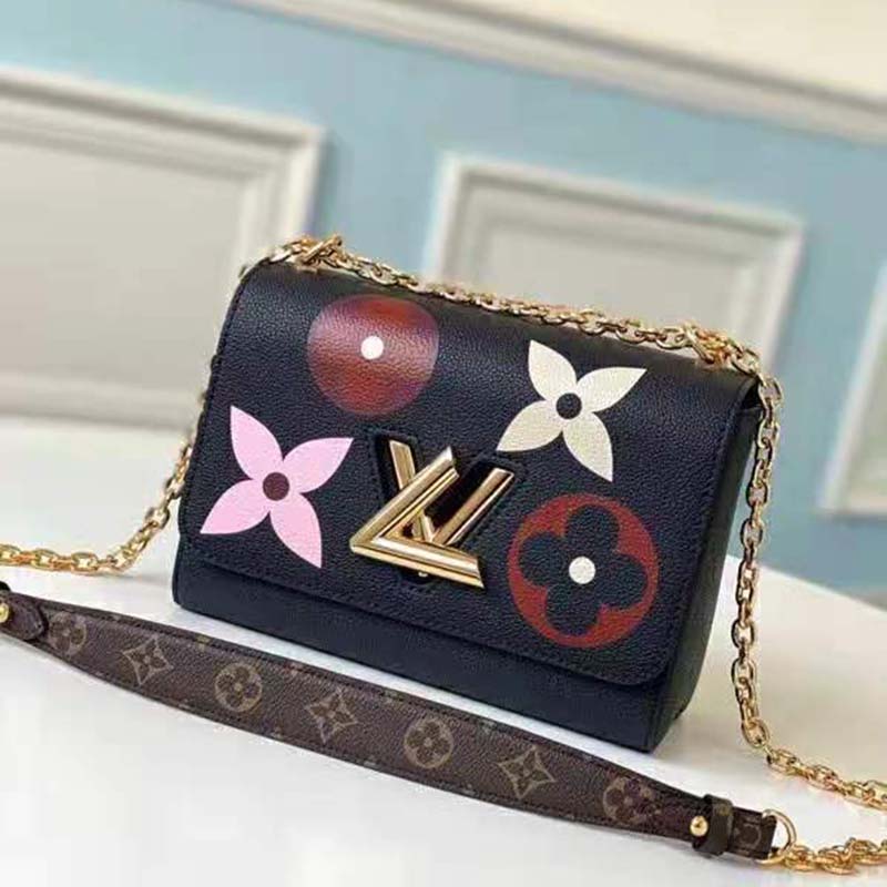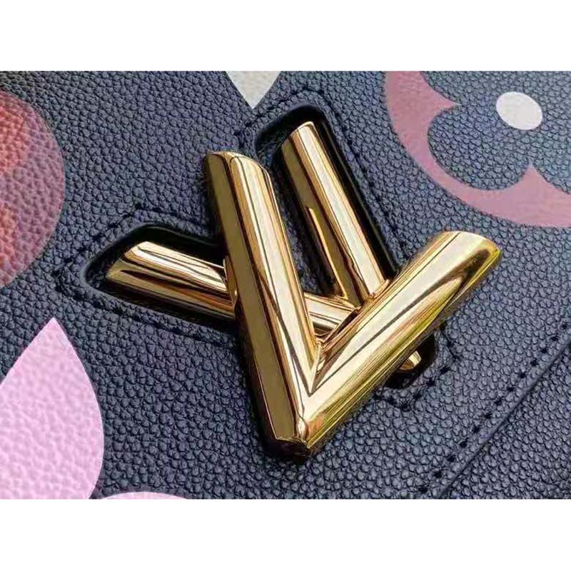 Combining Monogram Empreinte leather with a bold printed pattern, the Twist MM handbag features giant multicolor Monogram Flowers around the LV twist-lock.